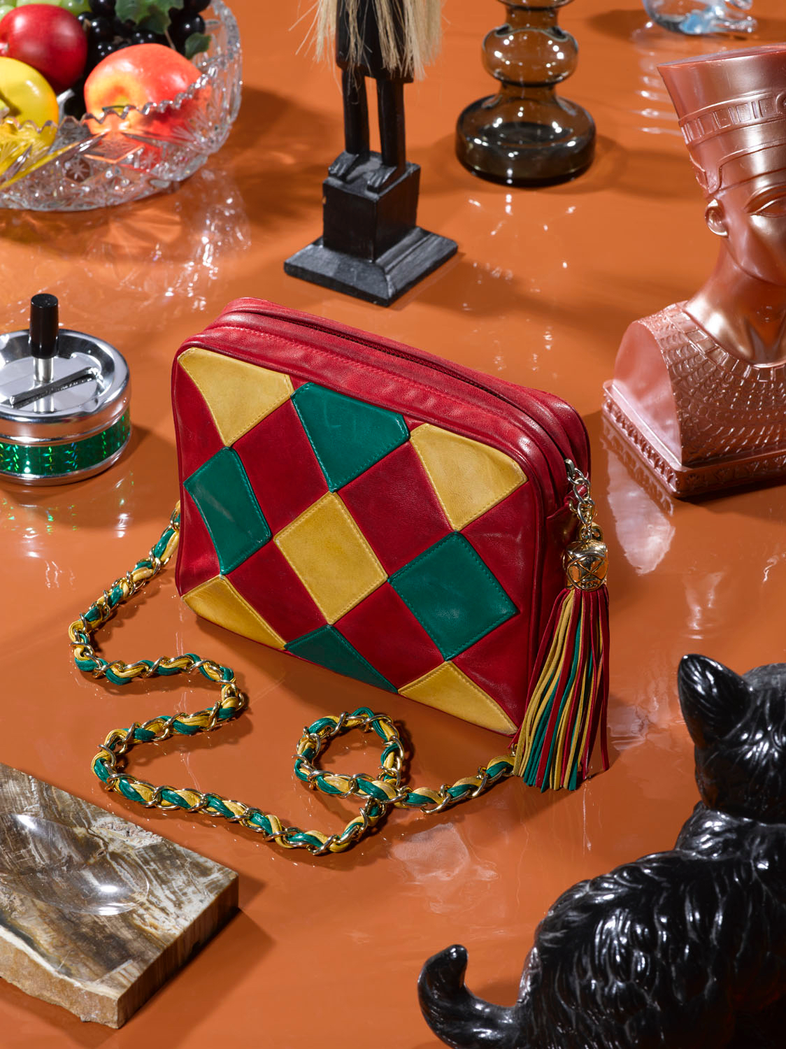 Iconic vintage bags were shot against uncanny backdrops blending the real and the artificial, the now and the past.
