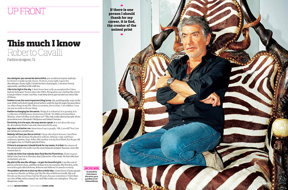 Daniel Stier’s recent commission by The Guardian sees him capture the charismatic style of designer Robert Cavalli with a series of portraits in a suitably grand setting of his much loved animal print.