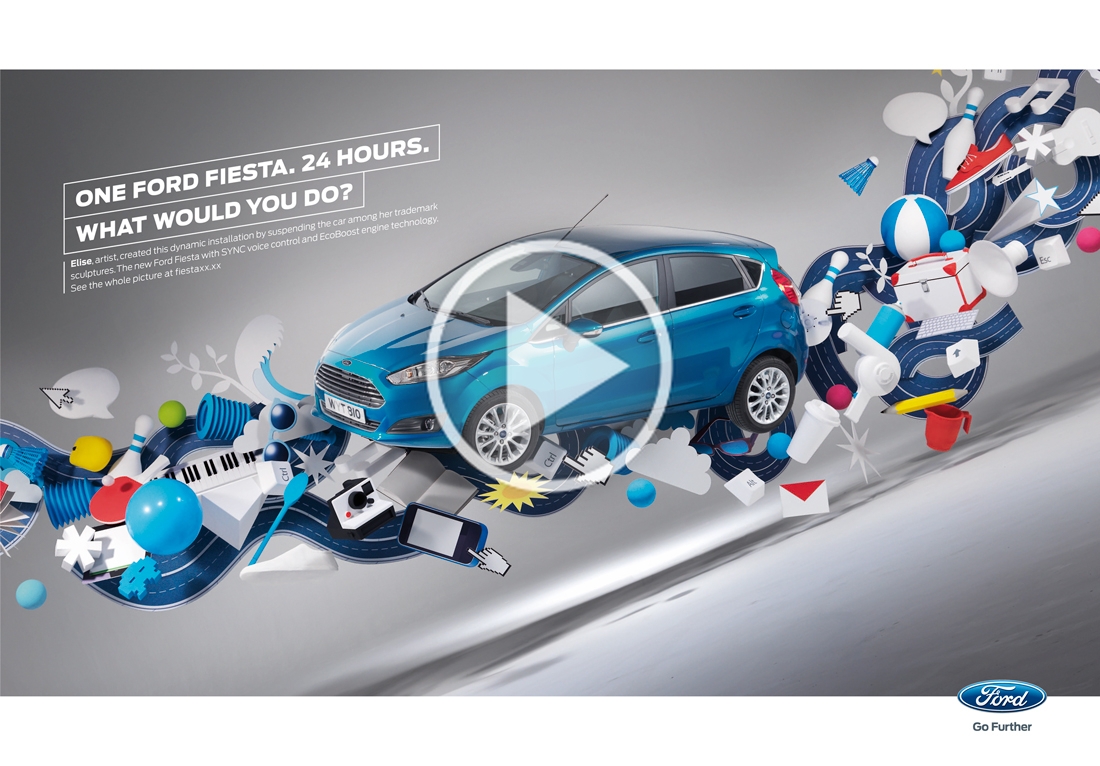 Elise was commissioned by Ford to create an Art Instillation featuring the new Fiesta