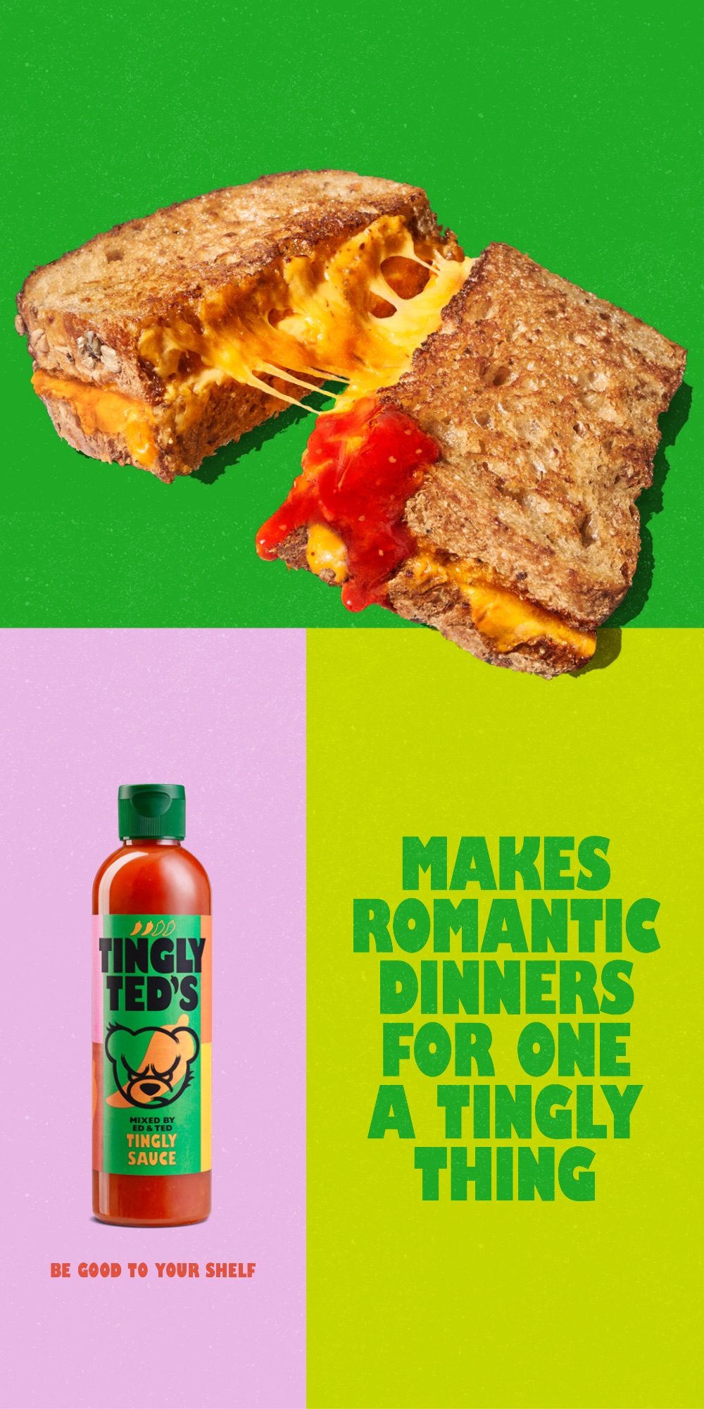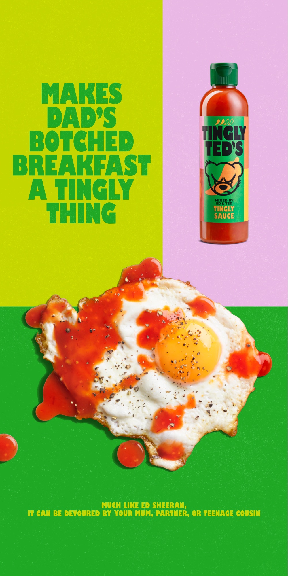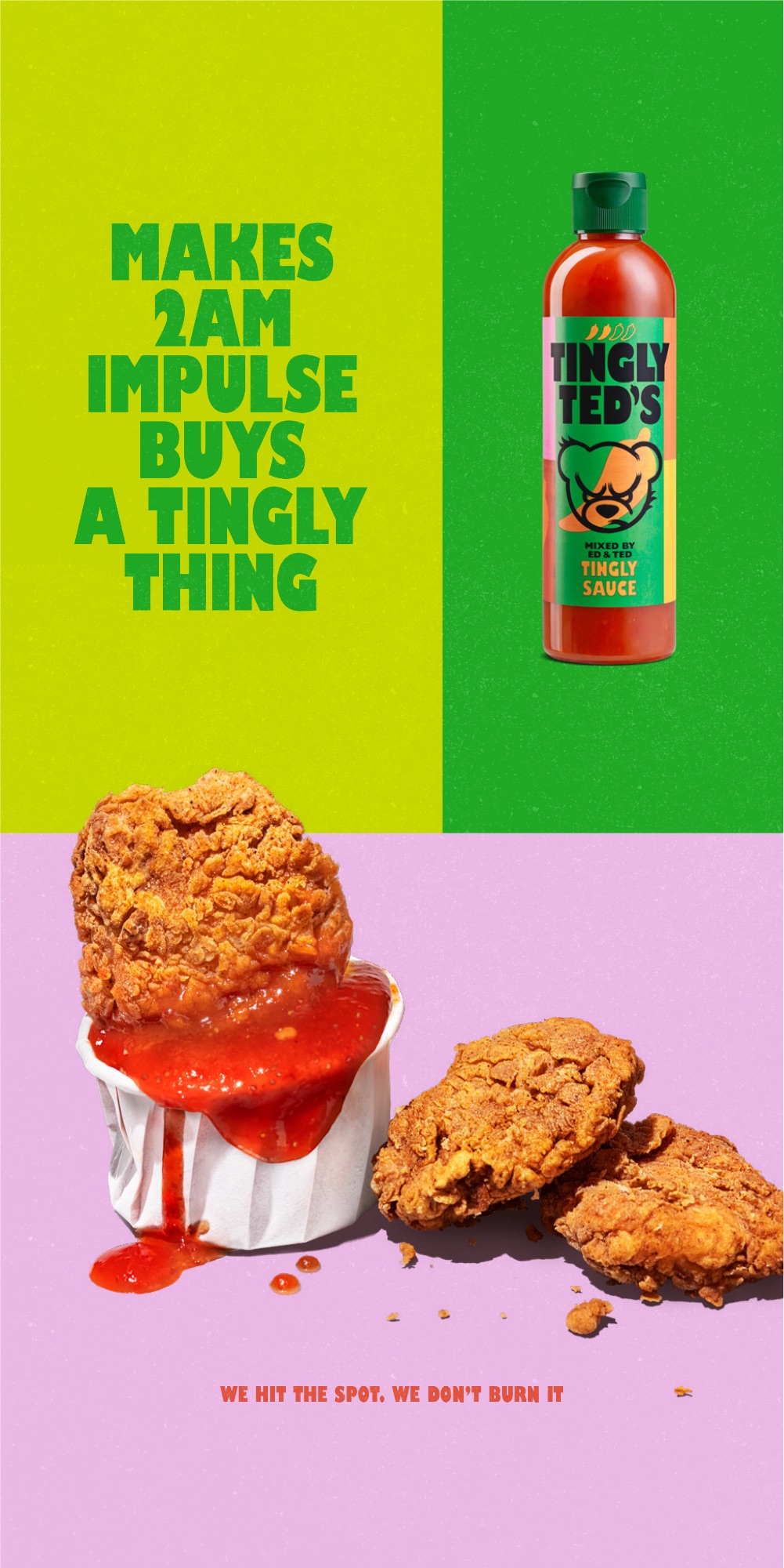 From chicken nuggets to the fried egg, Tingly Ted’s works on everything. We love this punchy and vibrant campaign – big thanks to the whole team!