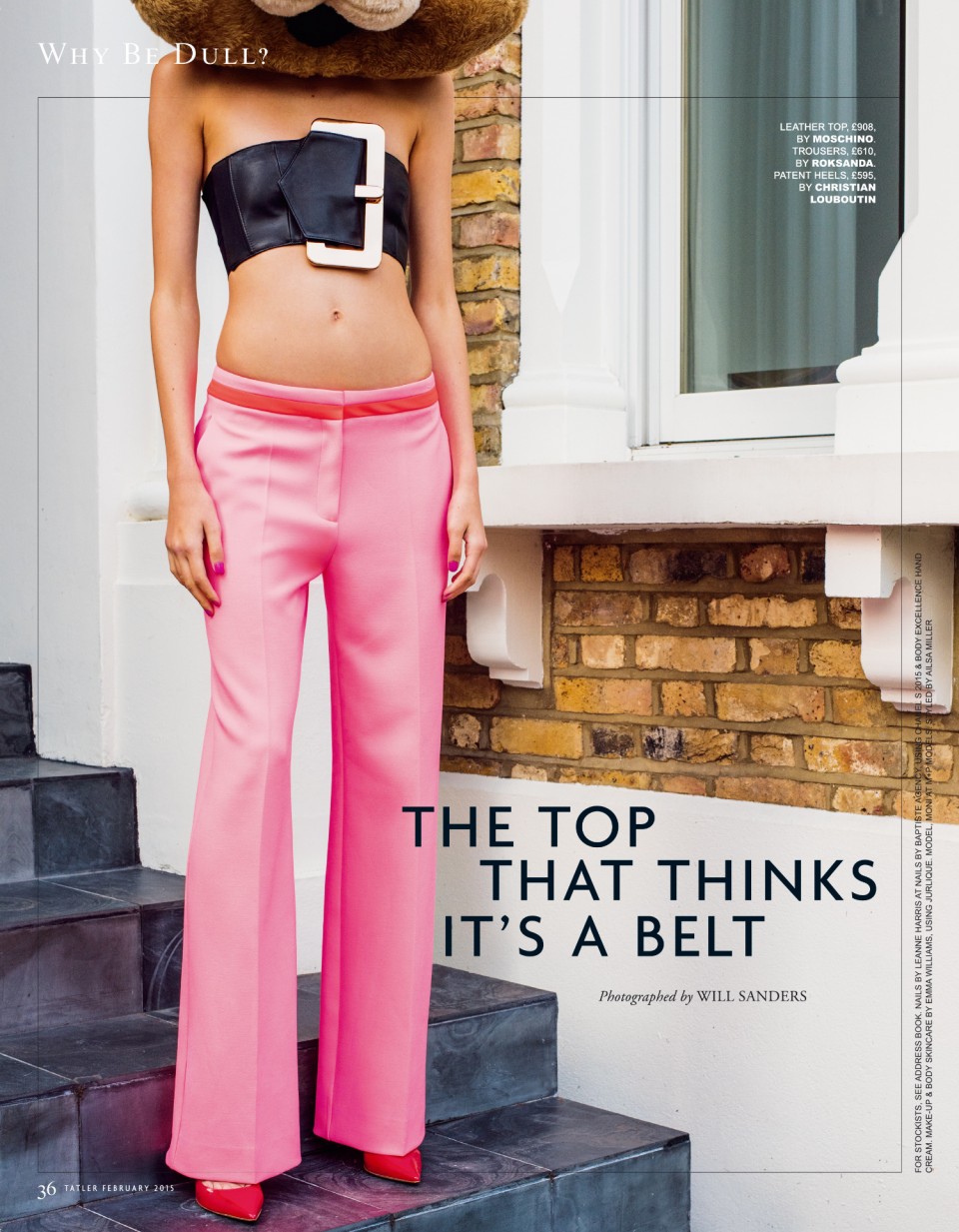 The amazing Moschino top that thinks it’s a belt, shot by Will Sanders for Tatler February 2015 issue.